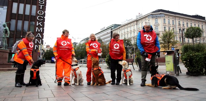Några hör till Helsingfors räddningsverk och Helsingfors befolkningsskyddsförenings räddningsgrupp och är tränade att söka människor i rasmassor.