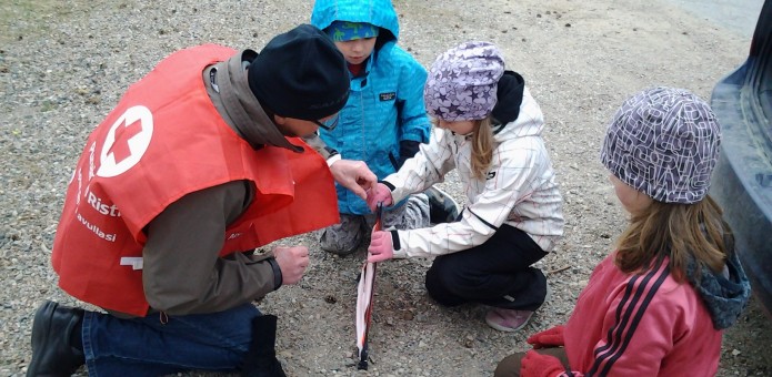 Rasteina oli varoituskolomion kokoaminen, ensiapulaukkuun tutustuminen, hätäilmoituksen tekeminen, vierasesine hengitysteissä - toimintaohjeet, tajuttoman kääntäminen kylkiasentoon, vuotavan haavan sitominen ja palovamman hoito.