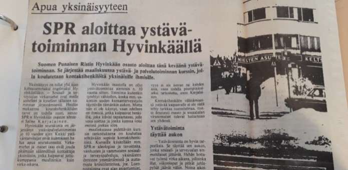 SPR:n Hyvinkään osaston ystävätoiminnassa voit auttaa yksinäistä ihmistä. Pääset vapaaehtoiseksi ystäväksi käymällä ystävätoiminnan peruskurssin (3 h).