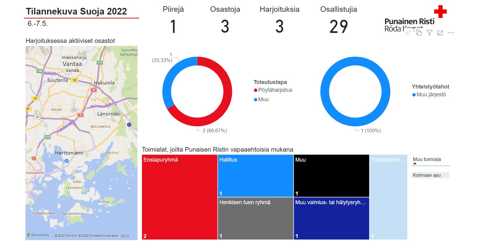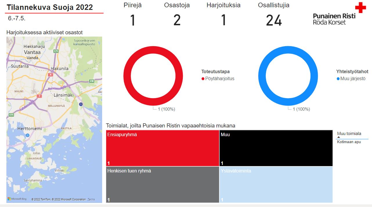 - Osastot ja piirit voivat seurata valtakunnallista tilannekuvaa linkin kautta. Linkki lähetetään osastoille harjoitusviikolla ja se näkyy myös tilannekuvan automaattisessa vahvistusviestissä.
