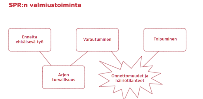 SPR:n valmiustoimintaa voidaan kuvata yllä olevalla kuvalla.