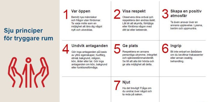 De sju principerna för tryggare rum engligt Finlands Röda Kors är: