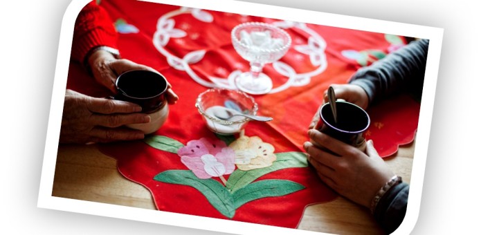 Tarjolla maistuvat kahvit ja hyvää seuraa.