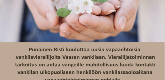 Vankilavierailijakoulutukseen voit ilmoittautua, mikäli olet kiinnostunut vankilavierailijatoiminnasta, olet vähintään 25-vuotias ja elämäntilanteesi on tasapainossa. Koulutuksesta saat tietoa ja valmiuksia vankilavierailijana toimimiseen.